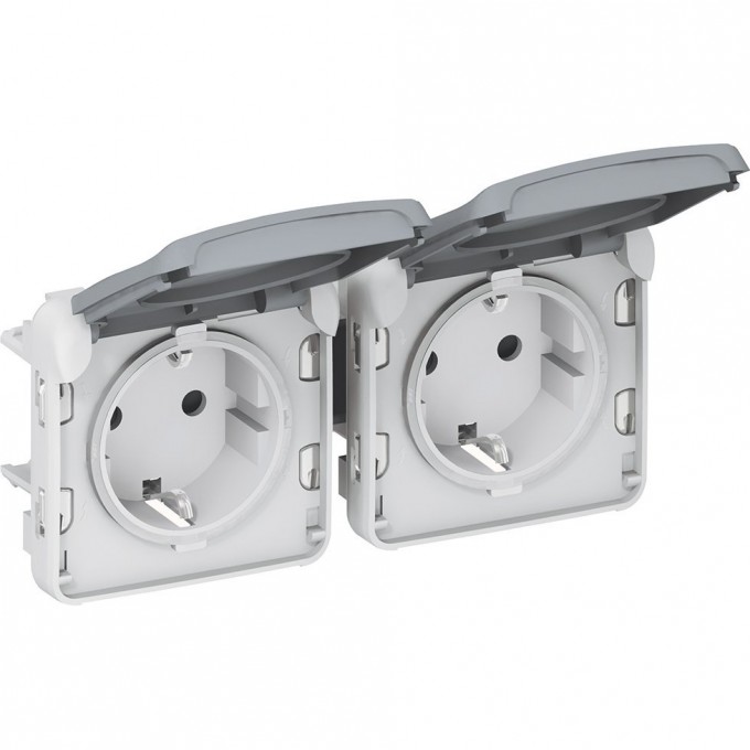 Розетка двойная LEGRAND Plexo 2х2К+З 16А горизонтальная, с автоматическими зажимами, IP55, серый 69576