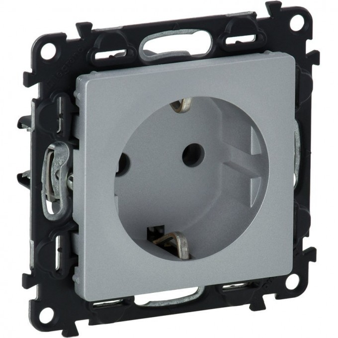 Силовая розетка LEGRAND Valena LIFE 2К+З 16А 250В с защитными шторками безвинтовые зажимы с лицевой панелью алюминий 753620